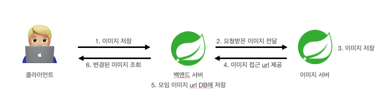 - 이미지 서버에 직접 접근해서 업로드하는것 보다는 기존 서버를 거쳐서 회원 유무를 체크하고, 이미지 서버로 이미지를 전송하는 방식이 더 좋아 보입니다.